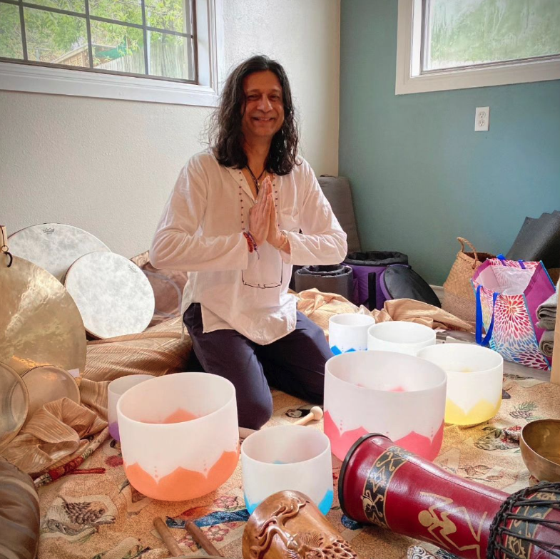 Anup Pandey, store owner of the Healing Temple and the Healing Vortex, is a sound healer using shamanic-Vedic drumming and crystal and Tibetan bowls.